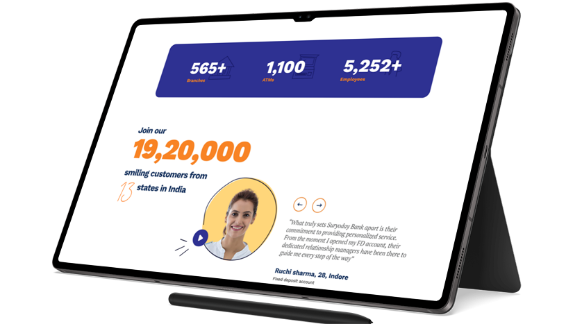 Suryoday Small Finance Bank Ltd. focuses on social inclusiveness by providing tailored banking solutions to the banked, under-banked, and unbanked. Committed to a customer-first approach, the bank aims to make banking easy and beneficial for all through intuitive and accessible features.